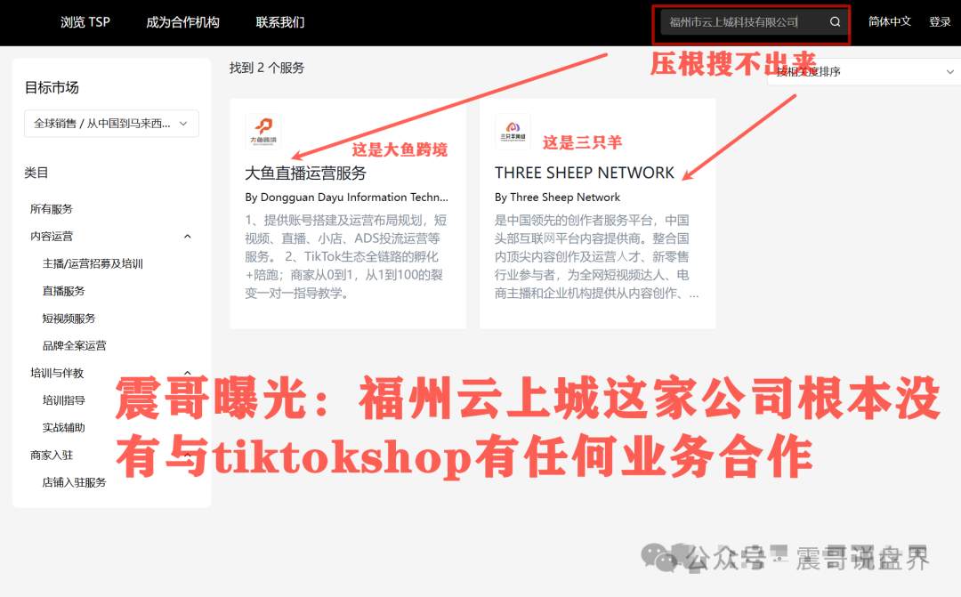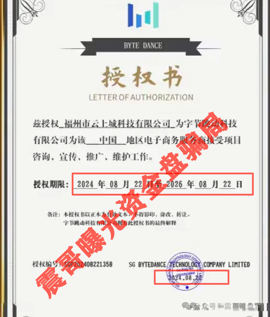 在资质审核方面,震哥团队发现该项目提供的TikTok授权文件存在明显问题。根据公开信息,福州云上城公司成立当日即获得授权,这与跨国平台服务商常规的资质审核流程严重不符。震哥通过TikTok Shop官方合作商查询系统验证,未发现该企业具有任何官方合作资质。