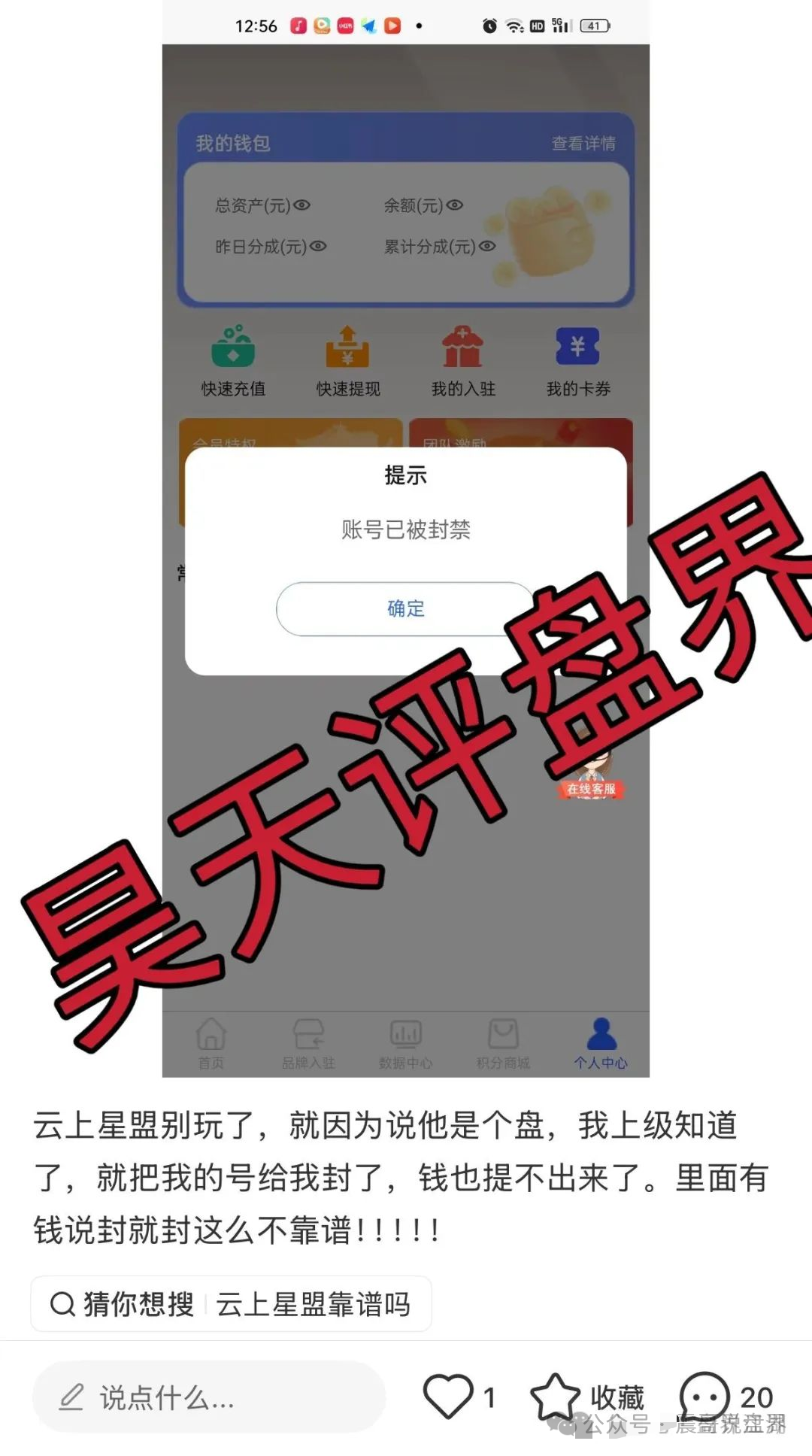 最近好多粉丝跟震哥说,有个叫云上星盟的项目疯狂拉人头,打着"线下实体店加盟"的旗号搞分红资金盘。好家伙,日收益1%?年化360%?路边修车店老板自己都赚不到这么多钱,还能天天给你发红包...