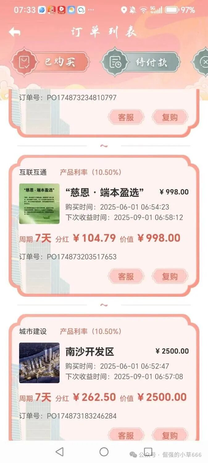 第二,你看到的“高收益”,其实是“割韭菜”的镰刀。 点进APP,满屏都是“广州城投项目”“东莞基建基金”“湾区互联互通工程”,听着是不是特别靠谱?年化收益7.8%起步,高的甚至到11.2%,还有“周收益10%”的“短期爆款”。这哪是理财?这简直是印钞机!可问题是,正规城投债年化才3%-5%,银行大额存单才3%左右。它凭什么给你翻倍的回报?答案只有一个:你的本金,正在被用来支付别人的“分红”。这就是典型的庞氏骗局——用新钱还旧账,等资金池撑不住了,就是崩盘之时。前期你能提现,是因为骗子在“养鱼”;等你加大投入,深信不疑,他们就准备“收网”了。这哪是投资?这是在给骗子送“弹药”。