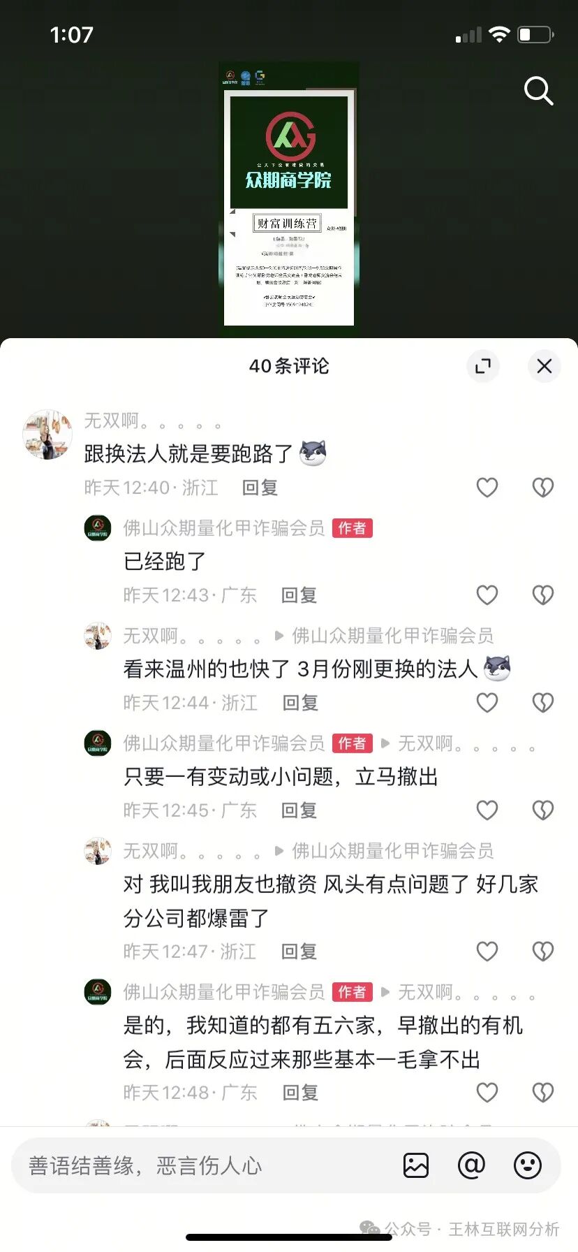 今天 曝光几个最近崩盘跑路和已经出现问题的资金盘骗局,谨防上当受骗,远离资金盘骗局,切勿参与! 众期期货(赠期1-3) 近期出来了不少期货类资金盘,一指天下等等,也不少崩盘跑路的,...