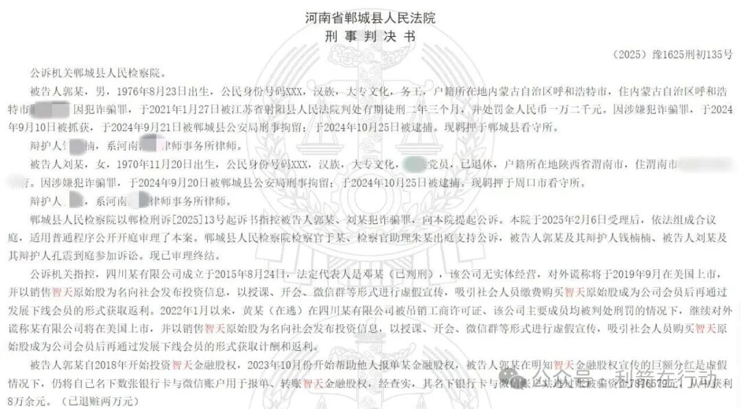 智天金融、智天原始股都是骗局,一骨干获刑4年,罚金2万元!...