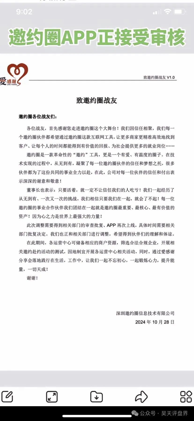 “邀约圈”这个资金盘昊天之前曾多次预警及爆料,相信看过的粉丝都没有被骗,这个骗局很简单就是单纯的拉人投资999元,然后拿推荐奖,说推广用户奖最终可分红每年50万?模式就不用昊天重复...