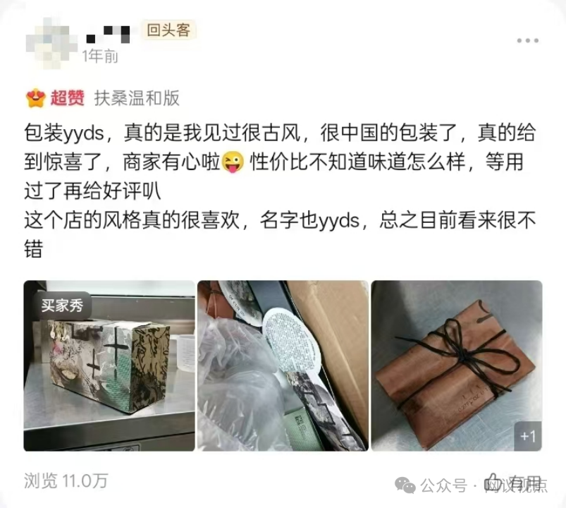 截止发稿日,该系列香水在抖音平台累计销量1.2万瓶,评论区中“留香时间长”“包装很古风、中国”等相关评价不少。