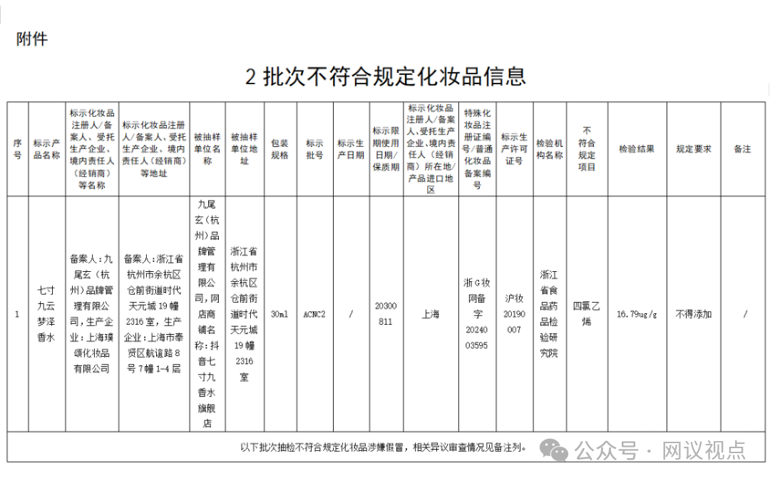 国风香水翻车!网红品牌“七寸九”云梦泽检出违禁物!...
