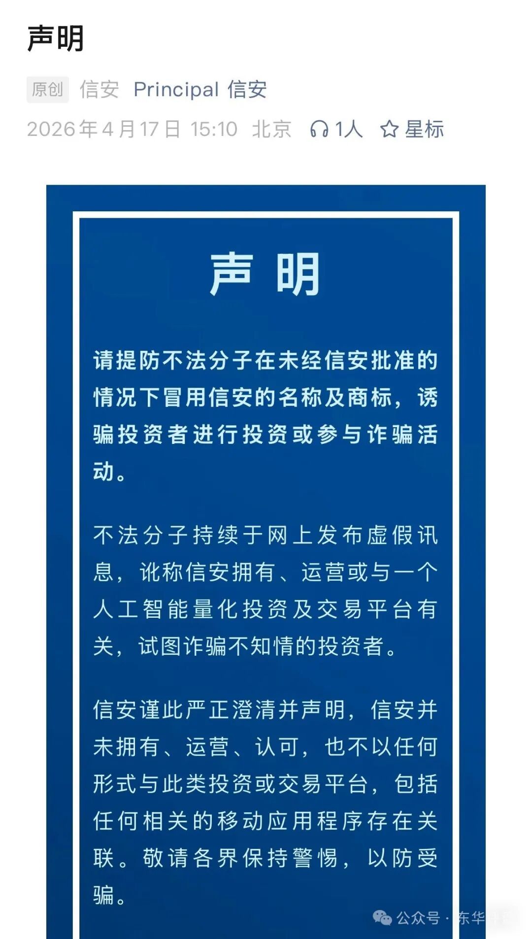 昊天看了一下真正的信安公司去年就出面打假了,前几天又发布了新声明,一共两条打假声明,不信的可以自己去查一下,声明如下: