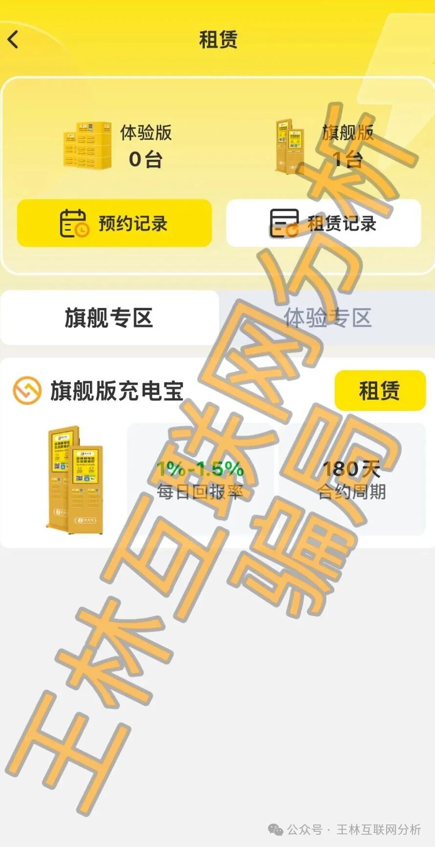 又一个分红类资金盘骗局,旗舰版充电宝每台仅300U,180天周期里每日1%-1.5%,赠送900租赁值,拉人头的奖励制度直推奖励2%-20%,还有第一代15%、第二代5%、第三代3%的代数奖励,设置L1-L7的层级团队业绩,达标可以拿10%-70%的团队奖励,这属于典型的传销模式,高度预警,典型的杀猪盘,大家看见一定要远离...