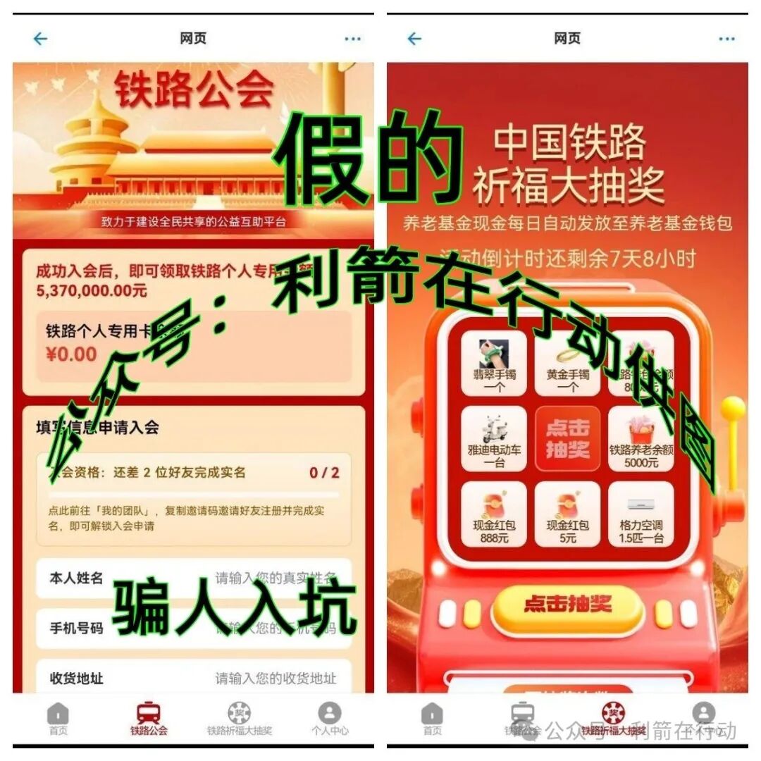 只要邀请2人注册“中国铁路”APP,就算成功入会?可申请“个人专用余额”,达到人数规定,最高可领取537万元,抽奖中的规定也是要求拉人注册“中国铁路”APP,至于“养老基金”的发放是假的,这不是社保部门,咋能发养老金?都是骗子的诈骗道具而已。目的是骗更多人进入这个诈骗陷阱中,便于以后骗走更多钱财。