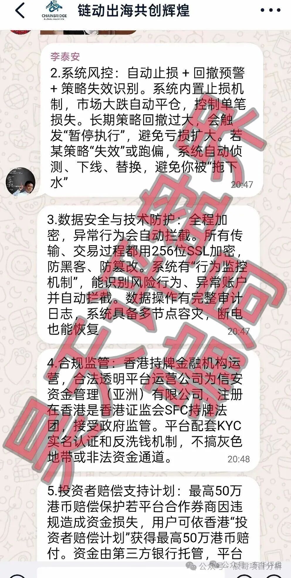 真正的信安公司去年就出来打假了,前几天又发了新声明,一共两条。不信的自己查。声明写得很清楚:信安从未与“链动出海联盟”建立或参与任何形式的合作。